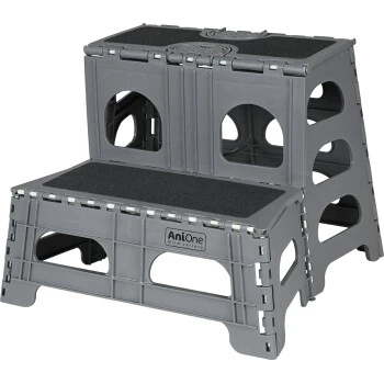 Durch den Einsatz der AniOne Stufenleiter wird die Muskel- und Gelenkbelastung deines Hundes reduziert, die durch das Springen beim bspw. Einsteigen in den Kofferraum entsteht. Leichte, aber robuste Konstruktion. Die Leiter hat eine Anti-Rutsch Beschichtung, welche für sichere Schritte sorgt. Zudem hat die Stufenleiter rutschfeste Gummifüße verbaut. Die Leiter ist einfach zu Handhaben, da sie mit einer Hand geöffnet und geschlossen werden kann.