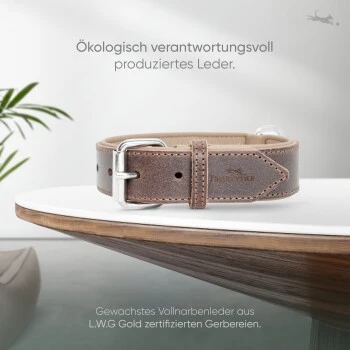 Außerdem verwenden wir ausschließlich aus der vollständig erhaltenen Narbenseite geschaffenes Leder, für eine markante und stets einzigartige Oberflächenstruktur. Die Schnalle und der Ring sind glanzverchromt für einen edlen Look gepaart mit bestmöglicher Robustheit. Dein Hundehalsband wird in einem wunderschönen Leinensäckchen geliefert. Ideal auch als Geschenk. Übrigens: Optional ist auch die passende Leine zu dem Halsband erhältlich!