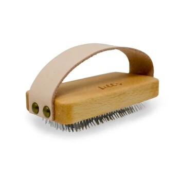 Das Leder der Handschlaufe ist ungefärbt und wird mit der Zeit etwas dunkler. Die Bürste wird also schöner, umso länger Du sie verwendest.