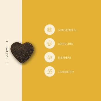 Diese Snacks sind ein echter Vitamin-Kick für immunstarke Hunde: Mit Probiotika, natürlichen Mikronährstoffen, den Vitaminen C und E sowie Zink unterstützen sie den Vitalstoffaufbau und viele Reparaturvorgänge im Körper des Hundes. Von Tierärzten entwickelt und unwiderstehlich lecker!