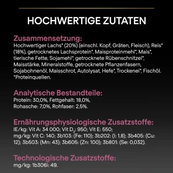 Bei PURINA PRO PLAN wendet unser Team von Ernährungswissenschaftlern und erfahrenen Tierärzten modernste Wissenschaft an, um die fortschrittlichste und effizienteste Nährstoffkombination für dein Haustier zu entwickeln. Diese Rezepturen helfen gezielte Vorteile wie eine hohe Verdaulichkeit und eine hohe Nährstoffaufnahme zu bieten, um die natürlichen Abwehrkräfte und die langfristige Gesundheit deines Haustieres zu unterstützen. Die Zutat Nummer 1 sind immer hochwertige Stücke von Huhn, Lamm, Lachs, Truthahn oder Rind, die tiefgefroren wurden, um wichtige Nährstoffe einzuschließen, und perfekt gegart für einen köstlichen Geschmack.