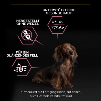 Unser vollwertiges Hundefutter ist speziell auf die Bedürfnisse von Hunden kleiner und sehr kleiner Rassen abgestimmt. Unser Hundefutter ohne Weizen ist mit ausgewählten Proteinquellen ausgestattet, um mögliche Hautbeschwerden, die häufig im Zusammenhang mit einer Nahrungsmittelunverträglichkeit entstehen, zu reduzieren.