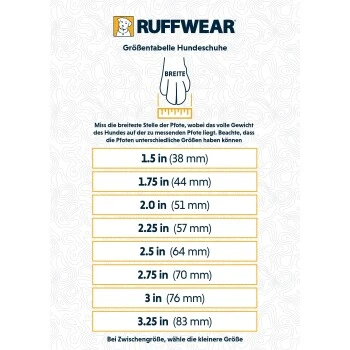 - Mit dieser Tabelle kannst du die passende Größe für deinen Hund finden. Bitte die Pfote belasten und dabei die breiteste Stelle messen. .