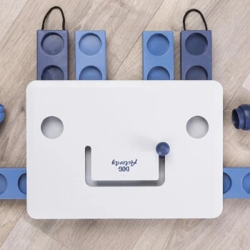 Hunde sind sehr intelligente und wissbegierige Tiere, welche nicht nur körperlich durch Spielen und Training, sondern auch geistig beschäftigt und herausgefrodert werden wollen. Durch den robust, aus Kunststoff gefertigten Dog Activity Move2Win von Trixie, können Sie Ihren Hund immer wieder von neuem fordern und durch das gemeinsame Spielen und Trainieren die Bindung zu Ihrem Liebling stärken. Das Brettspiel lässt sich gaz einfach mit kleinen Snacks oder Leckerlies befüllen, welche Ihren Hund zum Spielen annimieren. Durch Öffnen der Schubfächer, mit Hilfe der Schlaufen, bzw. durch Verschieben der jeweiligen Stempel, gelangt er an seine Belohnung. Nutzt man innerhalb des Spiels die Kegel als Stopper, lässt sich der Schwierigkeitsgrad steigern. Die inetgrierten Gummifüße machen das Brettspiel zudem äußerst standfest und verhindern somit ein Wegrutschen während des Spiels.